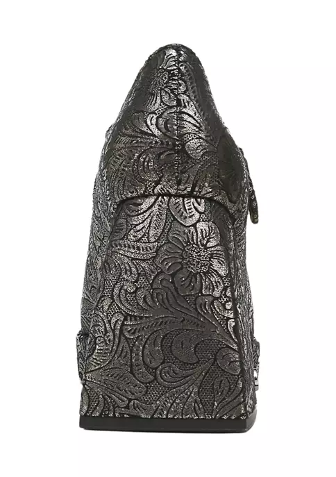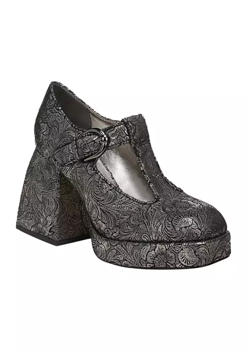 A modern take on the mary jane silhouette, this head-turning pump lifts you on a curvaceous block heel and platform.