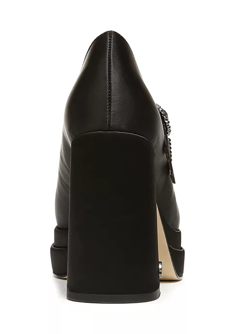 It’s double trouble with the double buckles of the Pepper heels. A tall heel and chunky sole add retro flare.