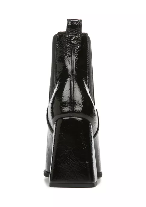 Look no further than Polly for this season’s perfect power bootie. A towering chunky heel and square toe box give an illusion of striking power and style, while bold materials draws attention (and keeps it!). Polly’s equally fearless whether she’s your clubbing partner or your daytime go-to.