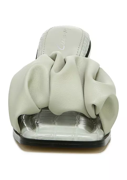 Stand tall but comfortable with Slade. A super soft slide on with a midi heel and statement-making ruffled strap. A warm weather staple you’ll fall for. Heel Height: 3 inches . Material: Synthetic.