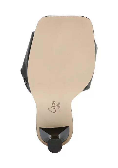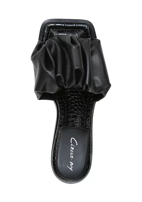The Slade Slide Sandals feature a faux-leather upper in a slide dress sandal style with an open, square toe.
