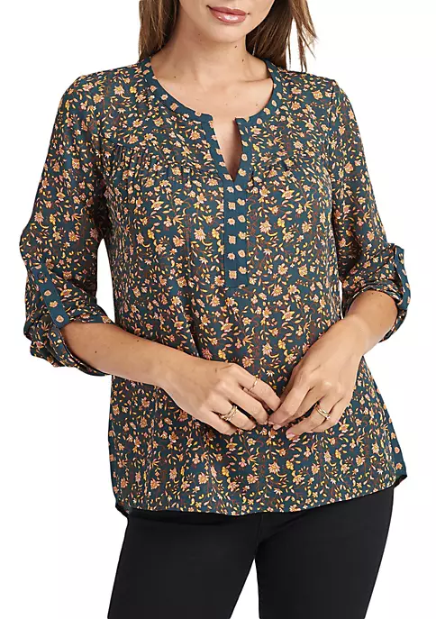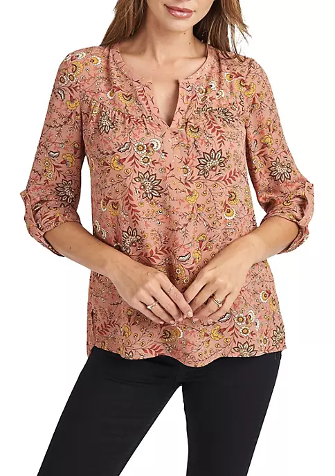 This tunic is a casual favorite with its flowy silohuette, contrast trim, and versatile 3/4 roll tab sleeves. Layer it over your favorite jeans or leggings for a carefree, laidback look.