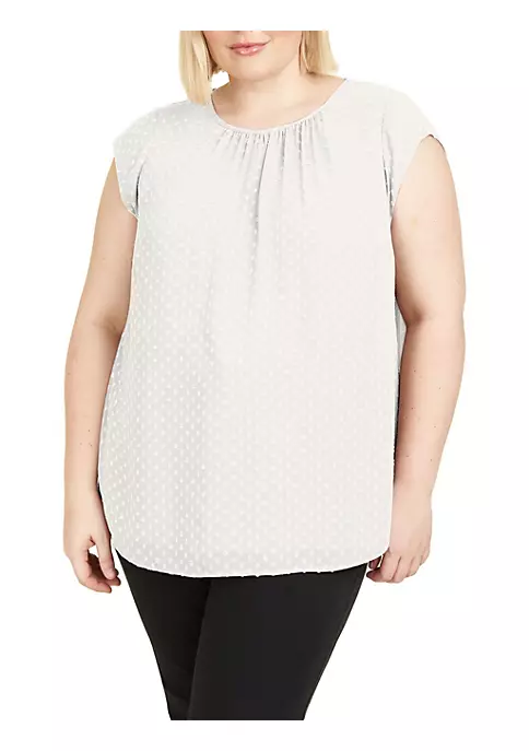 This blouse features an elegantly gathered neckline with gorgeous cap sleeves for a timeless look. Pair it with a cute pair of flats and some gold jewelry for an elevated outfit.