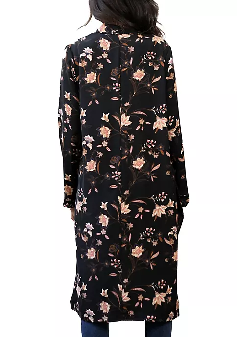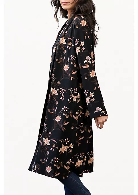 This floral jacket is designed with impeccable attention to detail. A must-have piece for any modern woman, the classic design features an open front and two side pockets that keep your hands warm while you run errands or grab coffee.