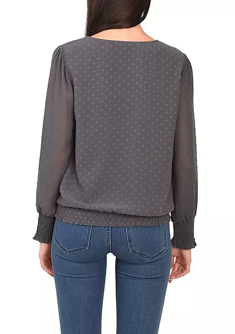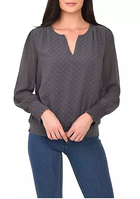 The Brittany top combines all the details you need to stand out during your next business meeting. The pretty sheer sleeves, smocked cuffs, and soft textured fabric make for a timeless but elegant ensemble.