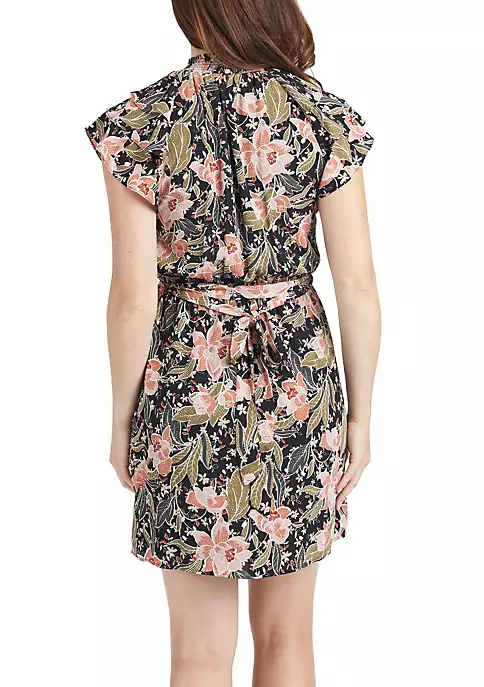 A style that will become a staple in your closet, this high-neck dress features a short ruffled sleeve and waist tie belt. The smocked neckline gives it the perfect fit, while the flowy skirt makes it easy to wear.