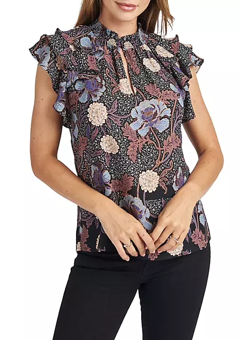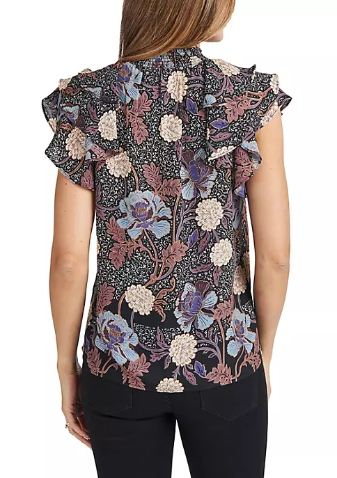 This stylish, feminine top features a mock turtleneck and is styled with tiered ruffle sleeves for added dimension. Created in soft, lightweight fabric to provide a flowy, flattering look.