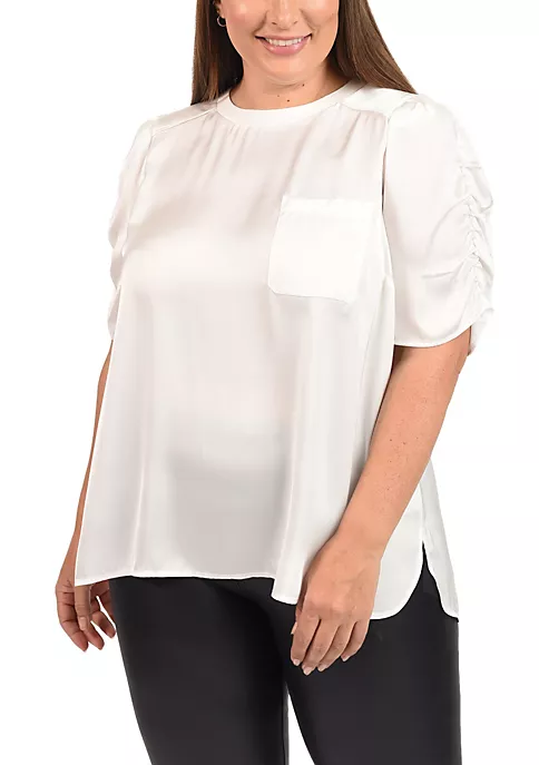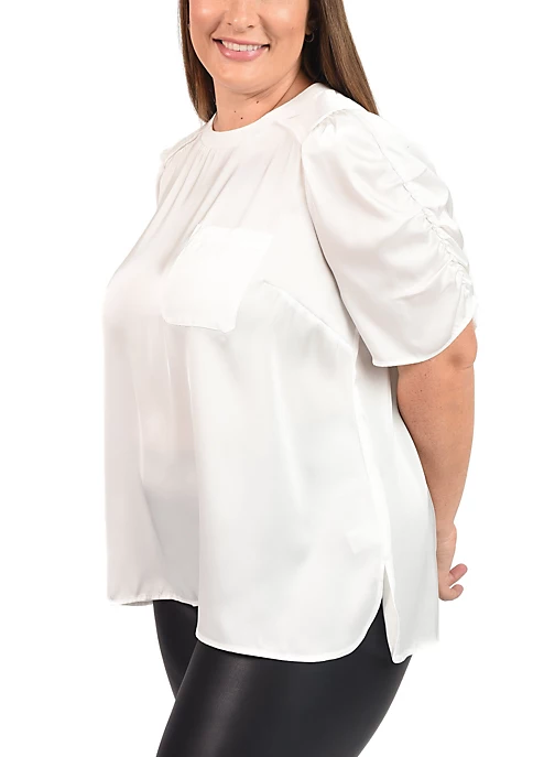 This blouse will become your favorite seasonal layering piece with its charming puff sleeves, breezy fabric, and utilitarian patch pocket. Layer it under a cozy cardigan, denims skirt and boots for a perfectly autumnal outfit.