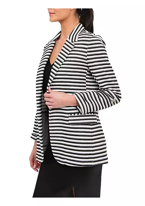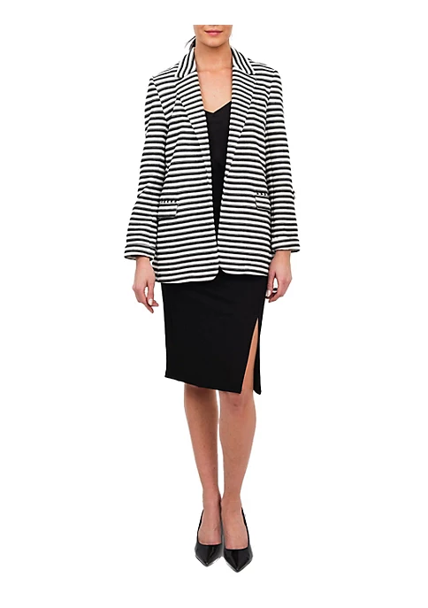 Stripes will always be in style and this blazer is a true show stopper. It’s the perfect piece to add to your professional wardrobe, or even pair with some jeans for a casual look. The open front and notch collar give it an elevated look, while the welt pockets add functionality.